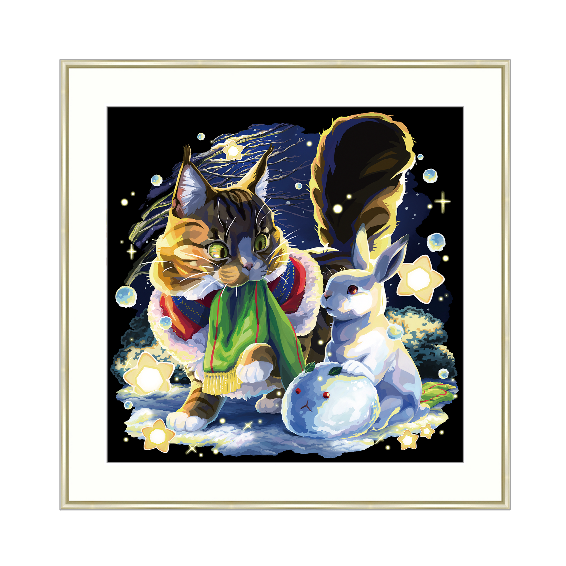 展示会作品などに使用される印刷技術を用いていて、近くで見てもアナログで描いたかのような美しい仕上がりとなっております。
