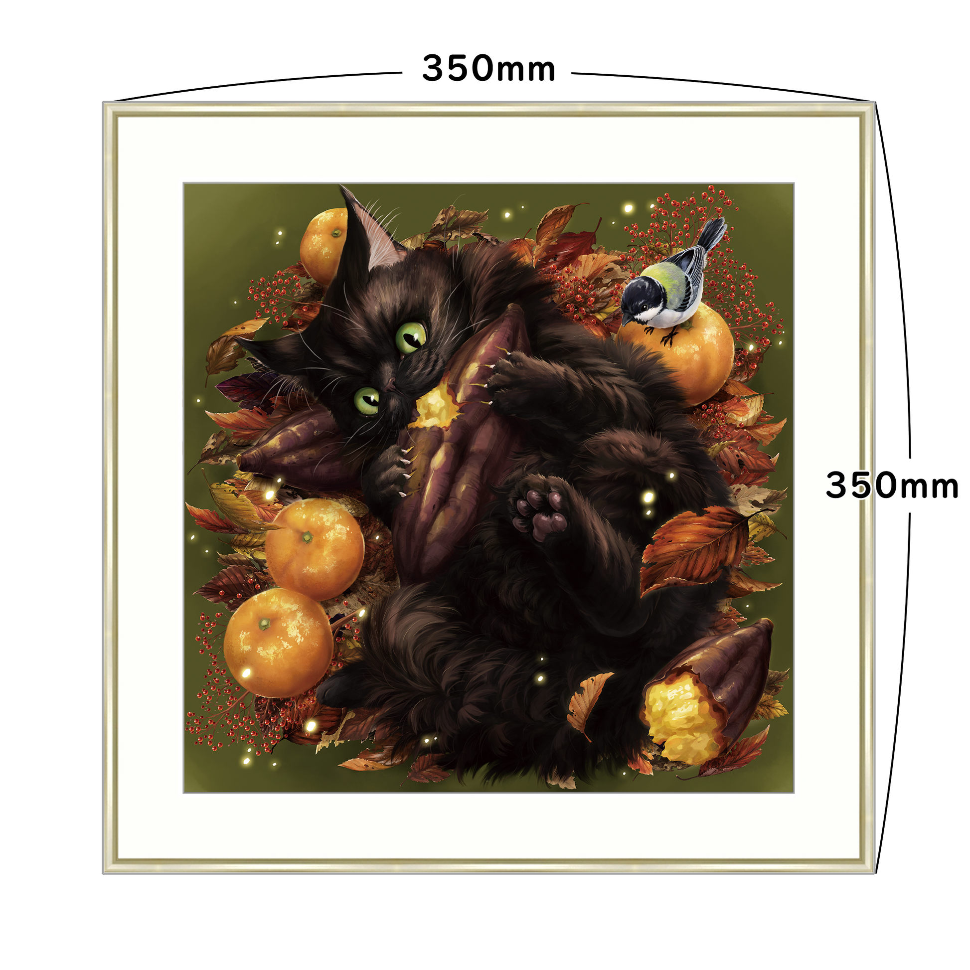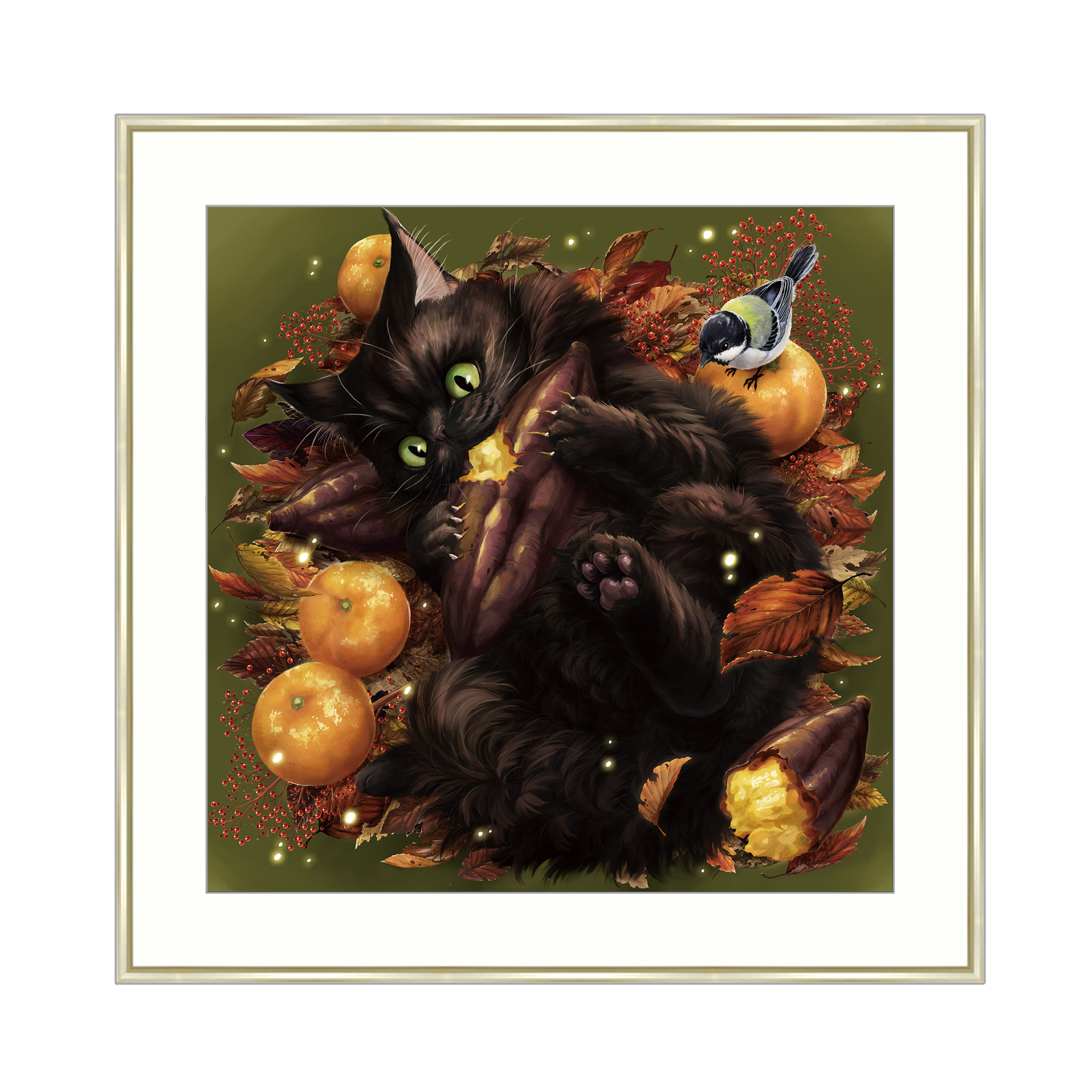 猫ちゃんの可愛らしさとほほえましさ、そして秋の美しさ、お芋食べたい欲があふれてくる作品となっております。